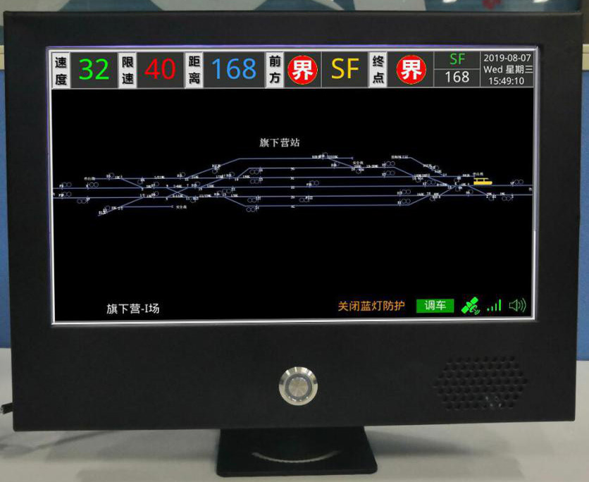JDF-V2R1型機車調車作業安全輔助防控系統核心功能是解決機車在鐵路站場調車作業的安全防護問題,而解決調車作業安全防護的關鍵是定位機車在站場內的精確位置和機車與地面防控點的相對位置。通過接入地面信號系統和列車運行監控裝置,在機車上顯示機車工況和地面調車信號,從而使機車根據調車信號走行并實施安全監控。相較于JDF-V1R2此系統可以以人機界面的方式清晰的顯示出地面防控點的相對位置。