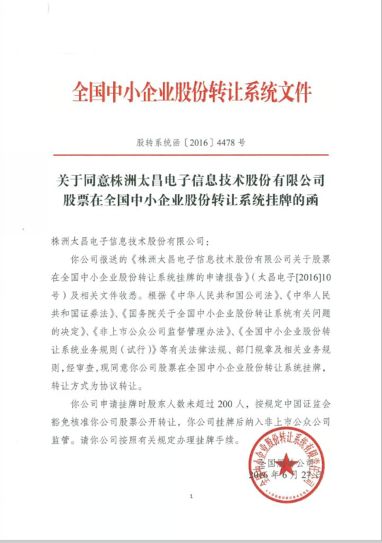 2016年8月4日,我公司成功登陸有中國“納斯達克”之稱的“新三板”,成為“新三板”掛牌上司企業。