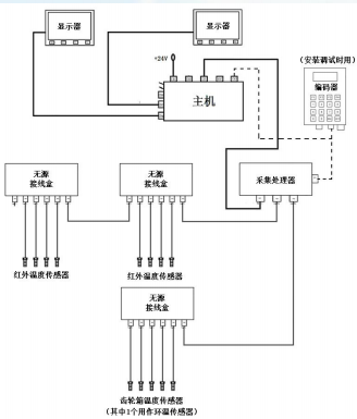 軌道車車輪在制動工況不良(如閘瓦偏移、長時間抱閘等)的情況下,車輪外側面處易發生熱疲勞損傷,可能會導致車輪整體徑向開裂,給行車安全帶來了隱患。TGB2D型非接觸式車輪踏面測溫裝置采用紅外測溫技術,實現對車輪踏面溫度的實時監測,能有效降低因車輪熱疲勞損傷帶來的行車安全風險。該裝置兼具齒輪箱溫度監測功能,采用單總線數字測溫技術實現對齒輪箱溫度的實時監測。同時,該裝置設置有與軸溫監測系統的通訊接口,可與軸溫監測系統級聯并通訊。